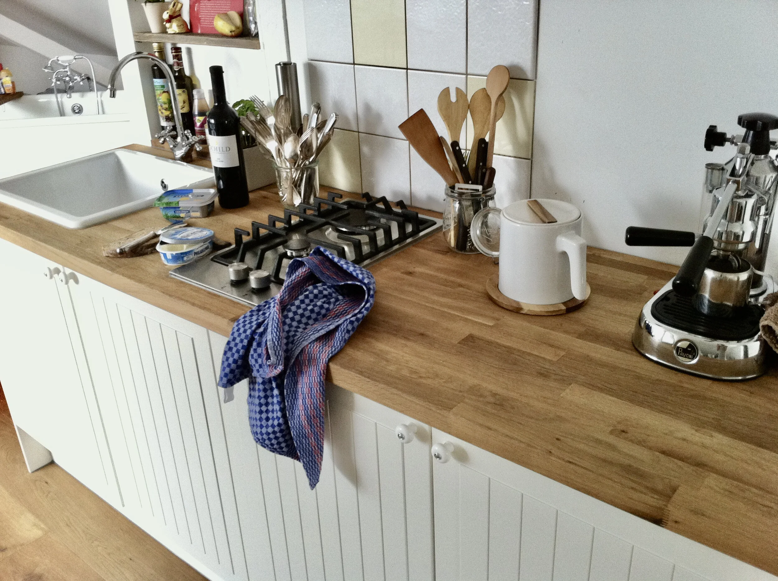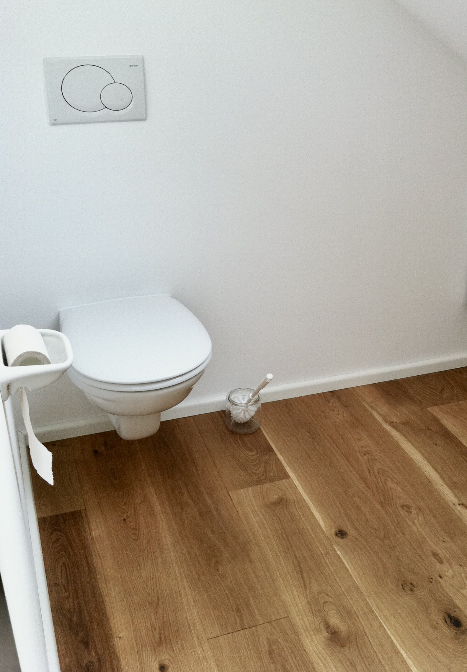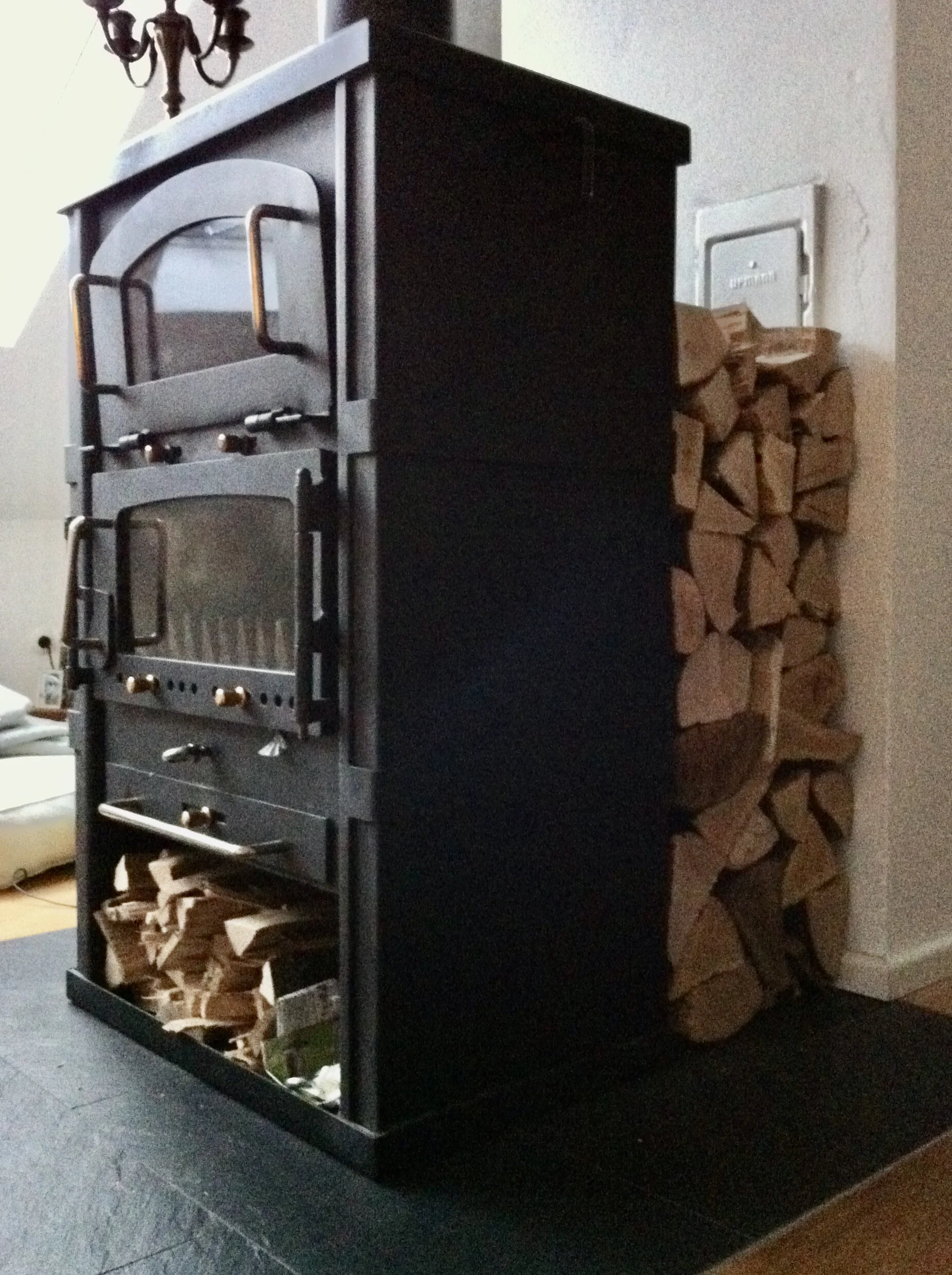 Das Dach des Hauses aus den 60ern wurde entsprechend entkernt, nach heutigem Standart neu gedämmt und erhielt vier Velux Fenster für ausreichend Beleuchtung. Im Inneren sorgt das durchgehende Eichenparkett für Harmonie und Weite, der noch vorhandene, wiederverwendete Ofen für Wärme und backt sogar leckeres Brot!